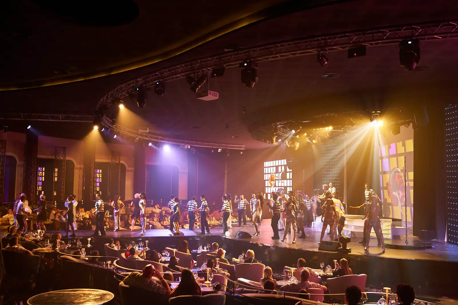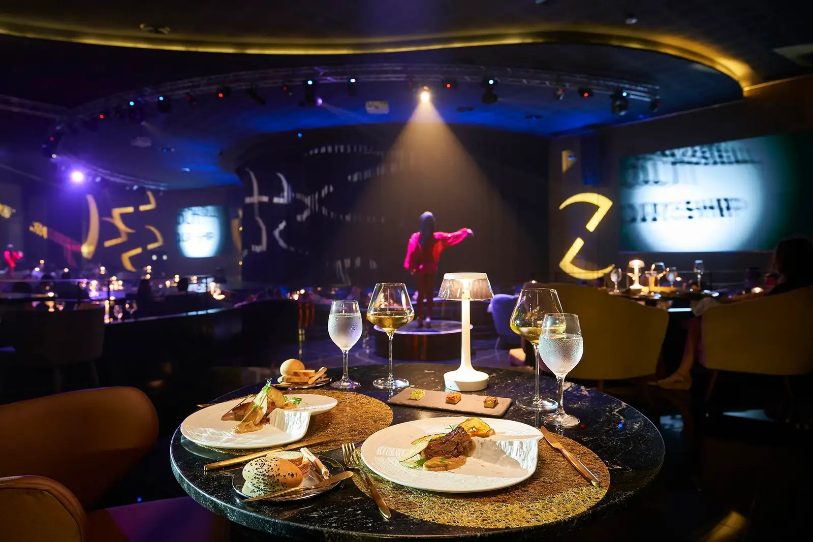 The first cocktail serves as a prelude to a glamorous and surprising night out. Dive into a delicious dinner that dances to the beat of the show, act by act and plate by plate. Discover astounding culinary creations that are carefully set by the scene. We can satisfy all your gastronomic needs: savor each hint of flavor from our exquisite signature dishes, where vegans and vegetarians are always welcome.