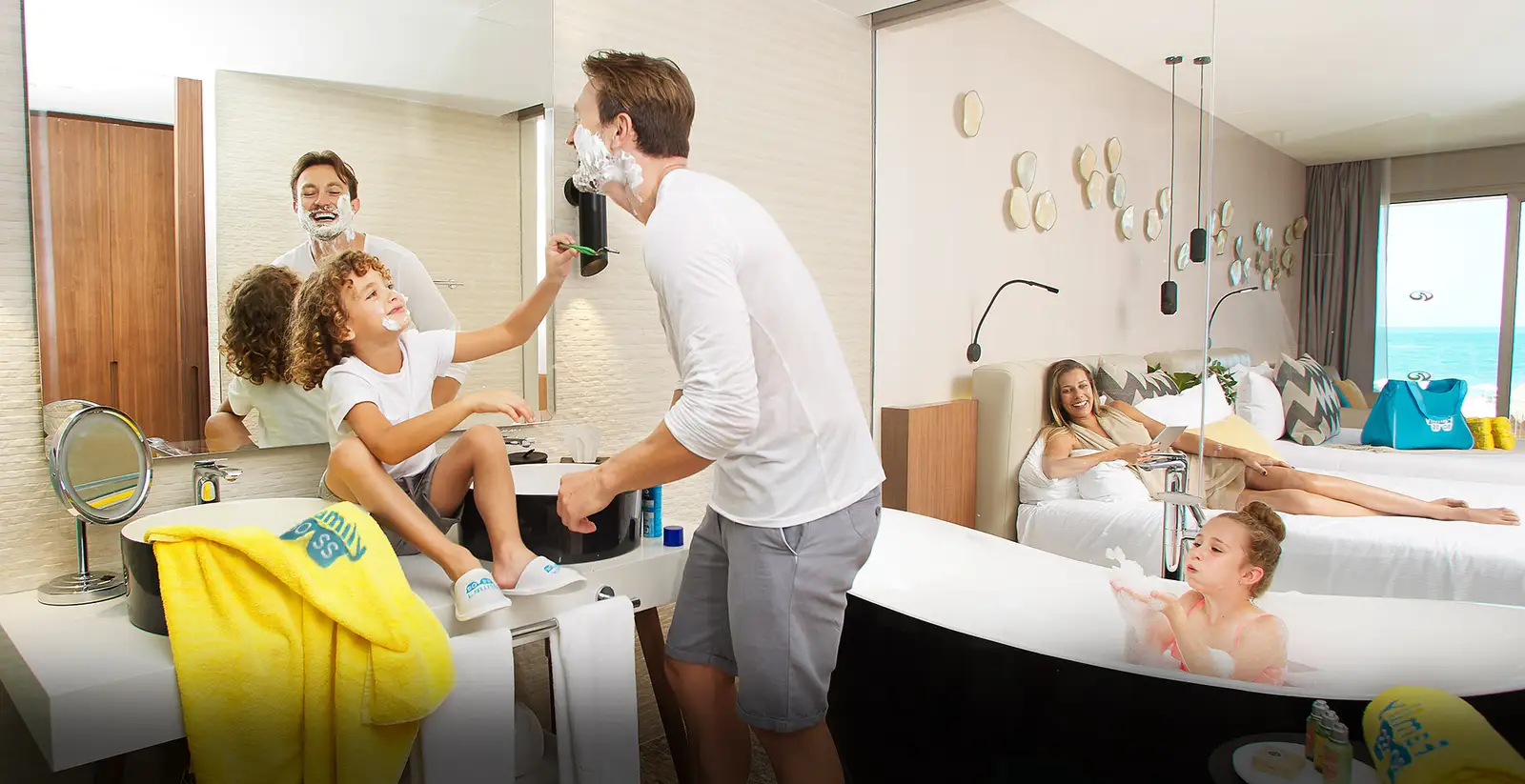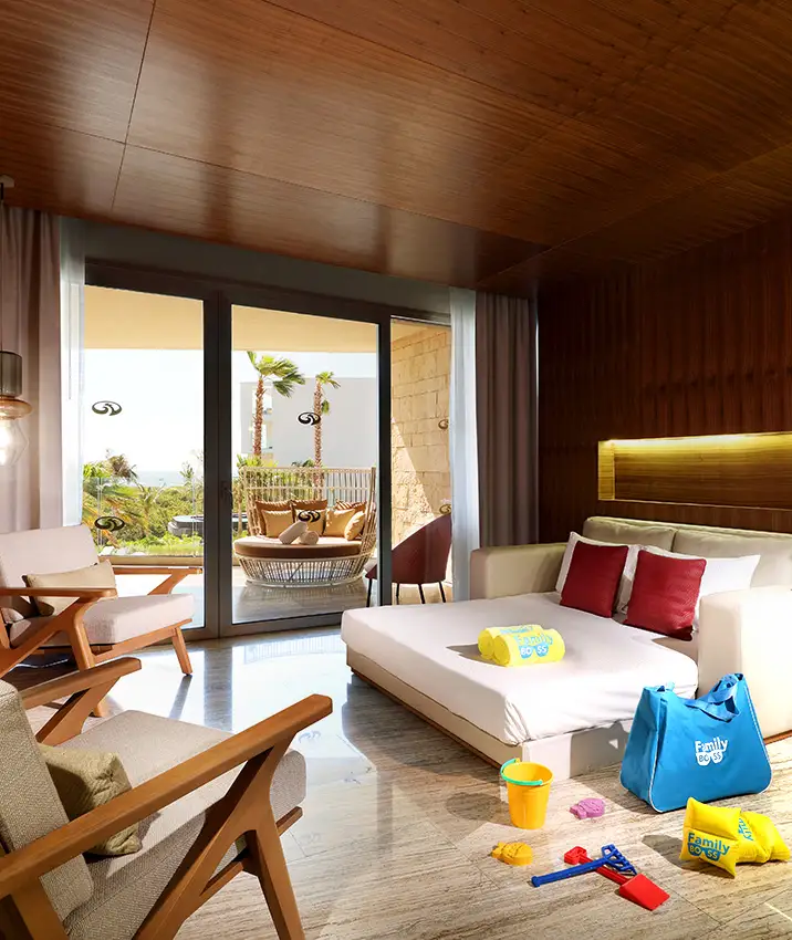 Las instalaciones de Family Selection y sus áreas exclusivas están ubicadas frente a la playa y su acceso está limitado solo a los huéspedes de Family Selection para que puedan disfrutar de un ambiente más íntimo y de una mayor comodidad en el hotel, la playa y la piscina.