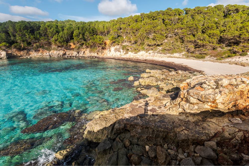 Muy próximas entre sí y rodeadas de pinares, estas calas combinan facilidad de acceso y belleza natural. Cala Mitjaneta, más recogida, es la que concentra mayor presencia nudista, sobre todo en los extremos y en momentos de menor afluencia. Son lugares ideales para quienes buscan iniciarse en el naturismo sin renunciar a cierta comodidad ni a aguas tranquilas para el baño.