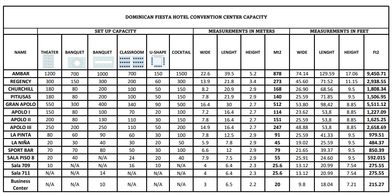 El Salón Ambar es el salón más grande del Dominican Fiesta Hotel , con 878 m². Tiene capacidad para 2000 personas.