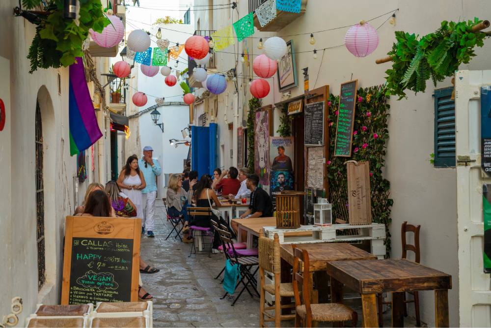 La calle de la Virgen, située en plein cœur du quartier de la Marina d’Ibiza, est l’un des lieux les plus emblématiques de l’île, tant pour sa vie nocturne animée que pour son rôle de référence en matière de coexistence et de diversité culturelle. Cette ruelle pittoresque s’est imposée comme un symbole d’inclusion, de liberté et d’esprit bohème, des valeurs profondément ancrées dans l’identité de l’île. Ses bars, ses terrasses et ses petites boutiques dynamisent une rue devenue un point de repère social et culturel, apprécié aussi bien par les habitants que par les voyageurs en quête de l’Ibiza la plus authentique.
